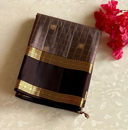 Our most loved Vintage rust orange with coffee wine brown kanjeevarasam pure silk stunner.