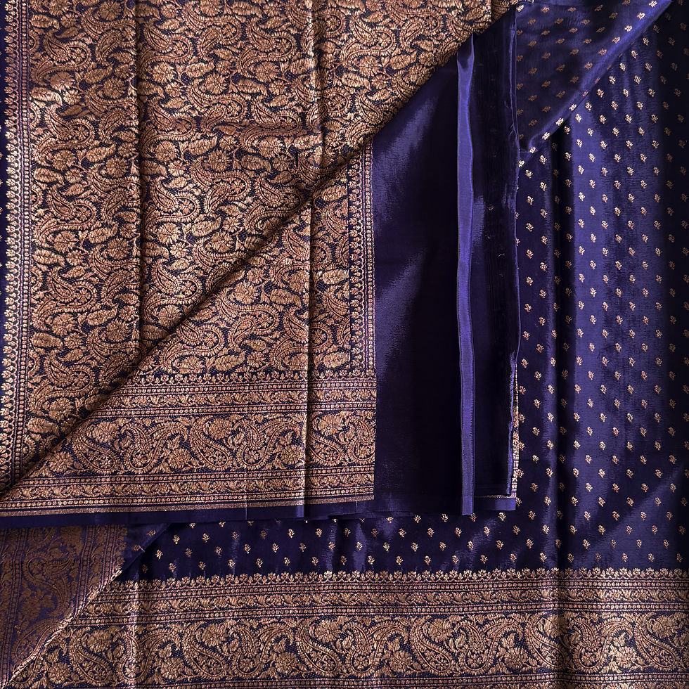 Midnight dark navy Banarasi soft crepe silk with antique zari buttas