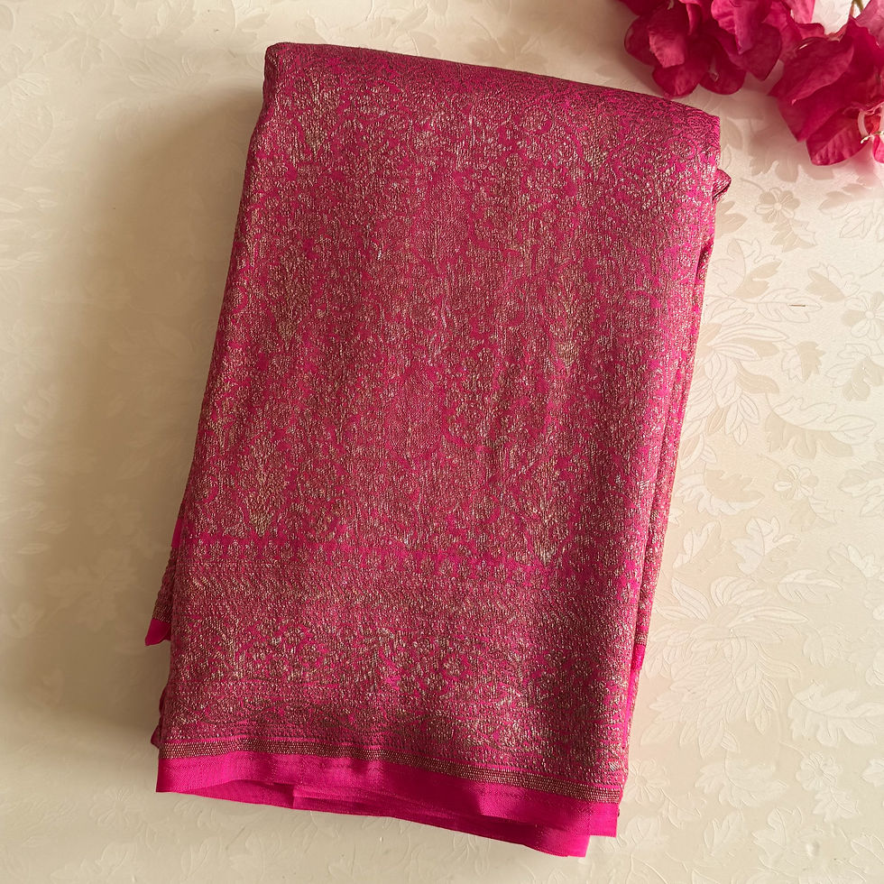 Ultimate Beauty ! Stunning hot rani pink delight pure Banarasi Georgette crep