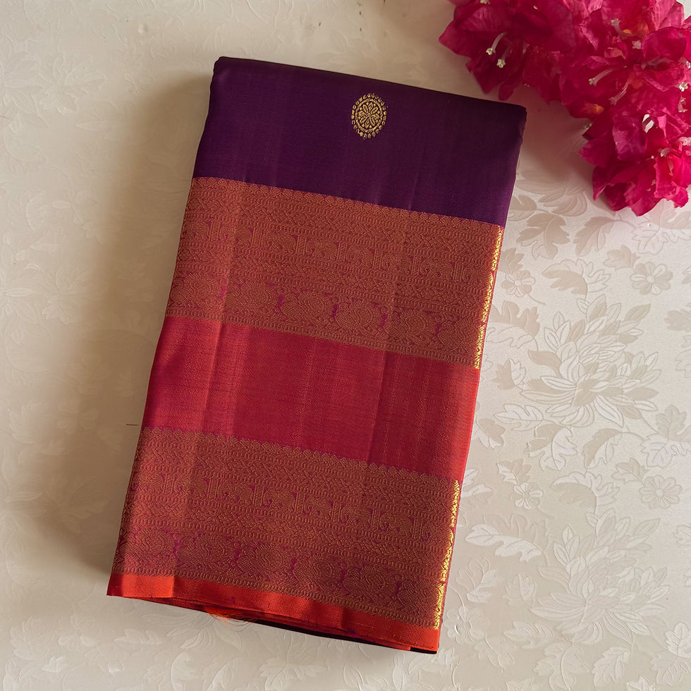 Deep purple with dual shaded rust orange retta pett pure zari woven Kanjeevaram